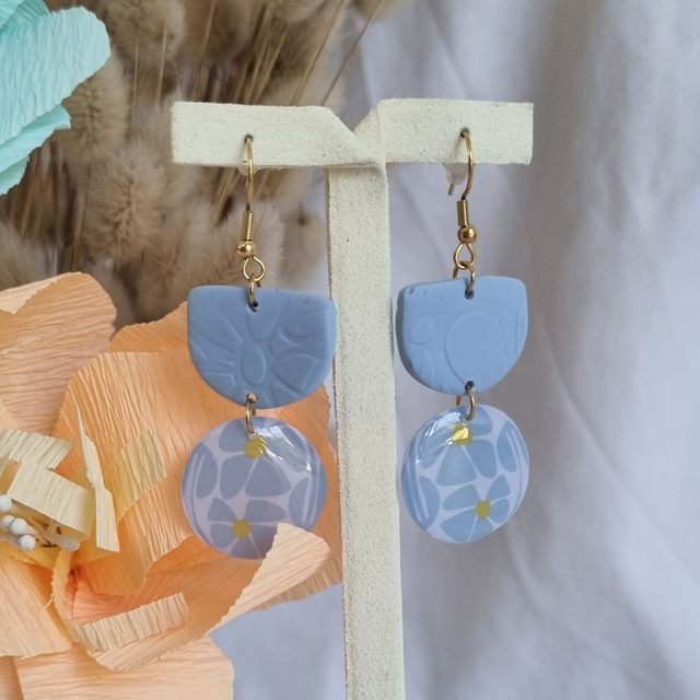 Boucles pendante composées d'une illustration fleuri résinée. Taille 5cm de longueur.
