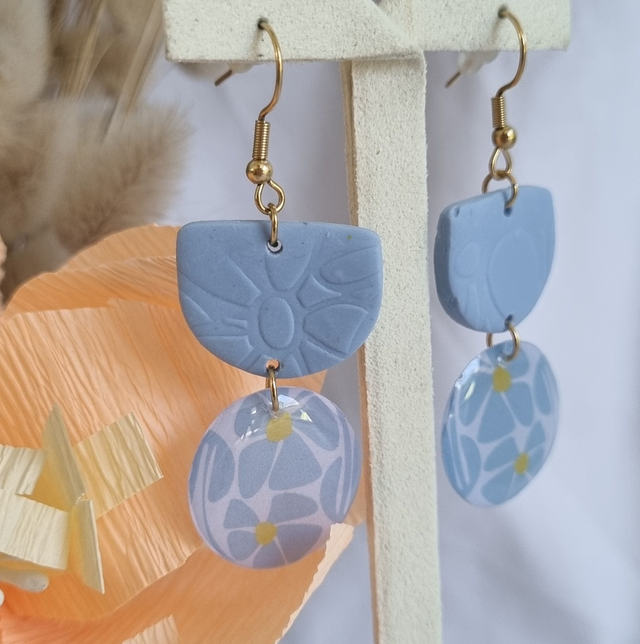 Boucles d'oreilles fantaisies en résine, pate polymère et acier inoxydable.