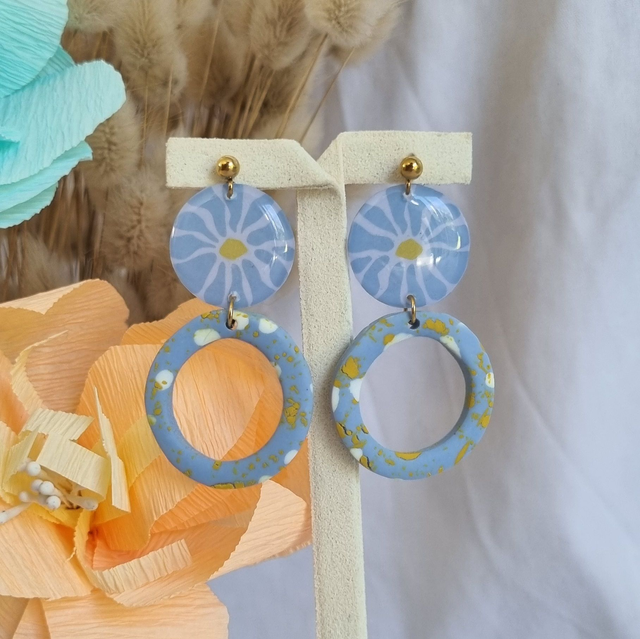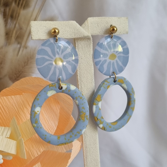 Boucles d'oreilles fantaisies en résine, pate polymère et acier inoxydable.