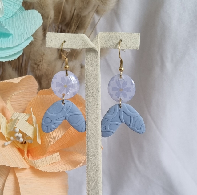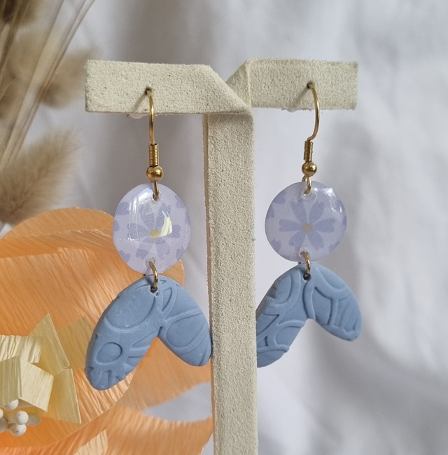 Boucles d'oreilles fantaisies en résine, pate polymère et acier inoxydable.