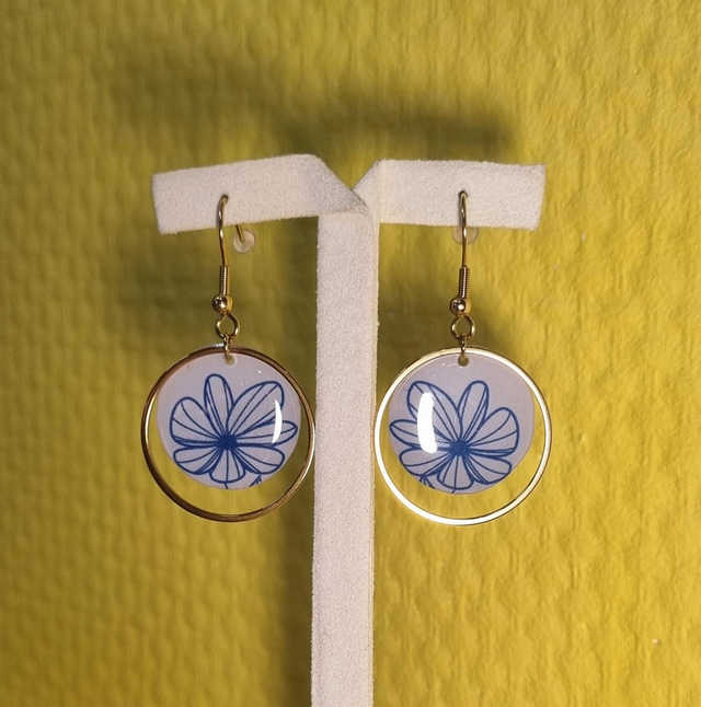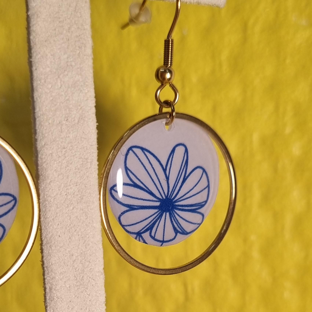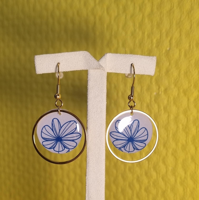 Boucles pendante composées d'une illustration résinée. Taille 5cm de longueur.