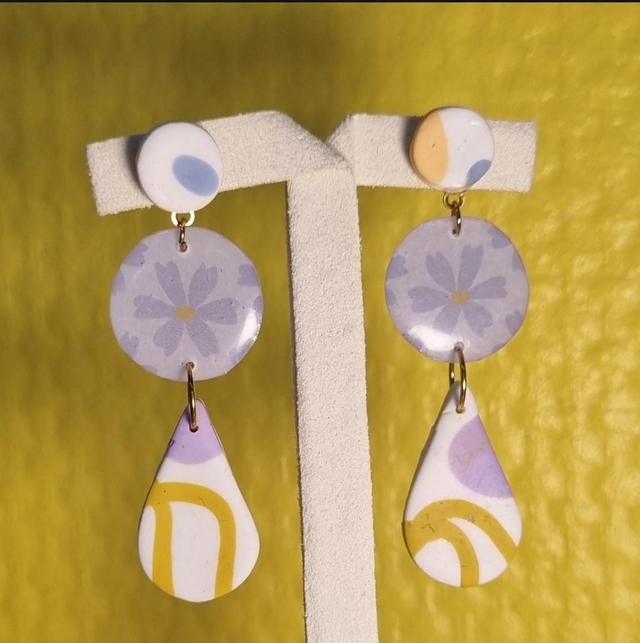 Boucles d'oreilles fantaisies en résine, pate polymère et acier inoxydable.