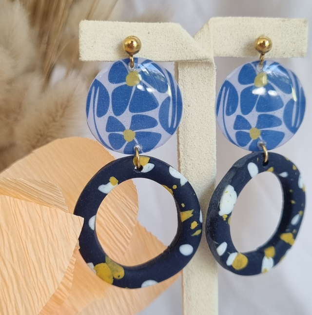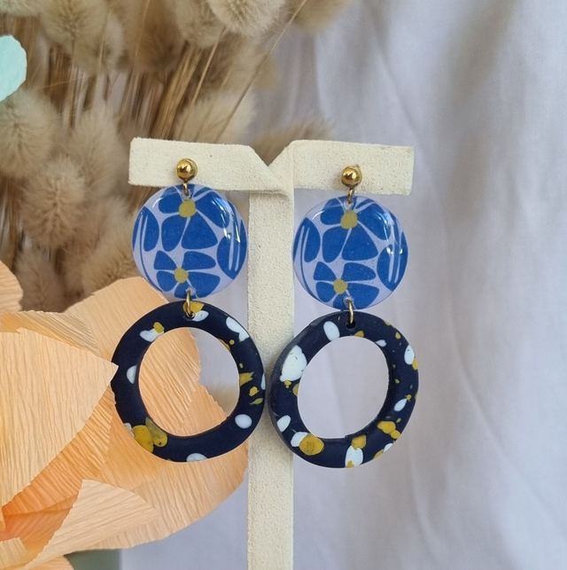 Boucles d'oreilles fantaisies en résine, pate polymère et acier inoxydable.